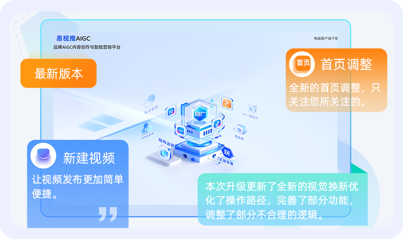 與眾不同 方能創(chuàng )造不同易視推云系統是給企業(yè)做一站式全網(wǎng)營(yíng)銷(xiāo)的SaaS云平臺,目前主要包含信息查詢(xún)、短視頻精細化營(yíng)銷(xiāo),獨立站精細化營(yíng)銷(xiāo),為企業(yè)提供全面營(yíng)銷(xiāo)的搭建、運營(yíng)、營(yíng)銷(xiāo)、轉化的一站式解決方案。
