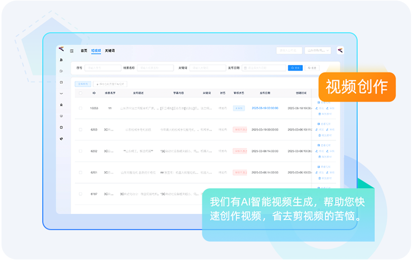 視頻制作,不限視頻條數,可以保持賬號活躍度,同時(shí)視頻帶入排名算法剪輯,視頻質(zhì)量度高,精準推送流量更多,上詞更多,排名更穩定,AI我們可以實(shí)現橫豎版視頻自由切換!